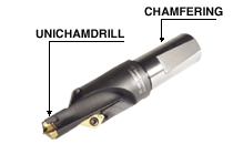 DCT (M8-M24) : CHAMDRILL indexable head drills with chamfering insert, mainly for pre-thread holes.