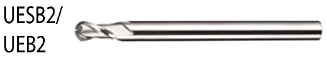Carbide Ballnose Endmills - 2 Flutes , Standard Cut Length / UESB2 / UEB2 Size:R0.5~R8.0