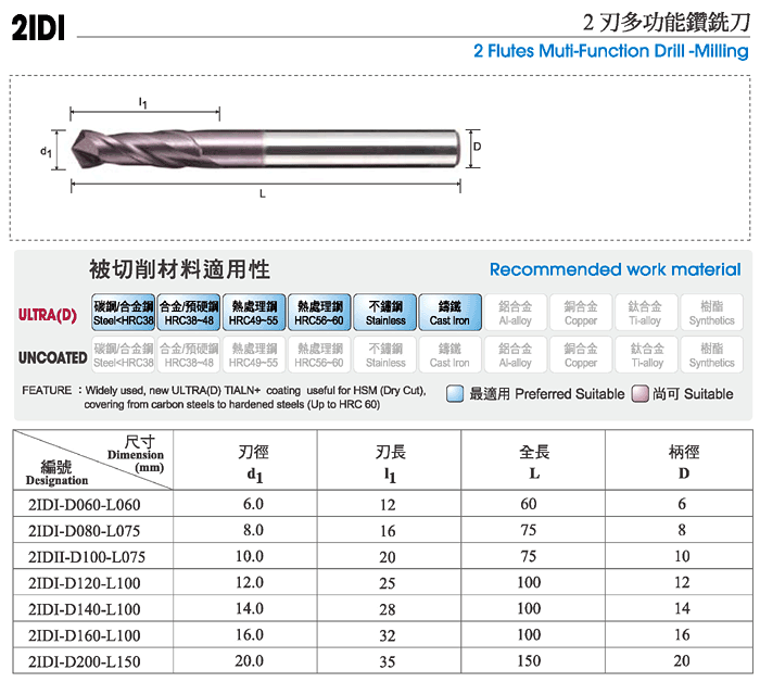 2 Flutes Muti-Function Drill -Milling / 2IDI